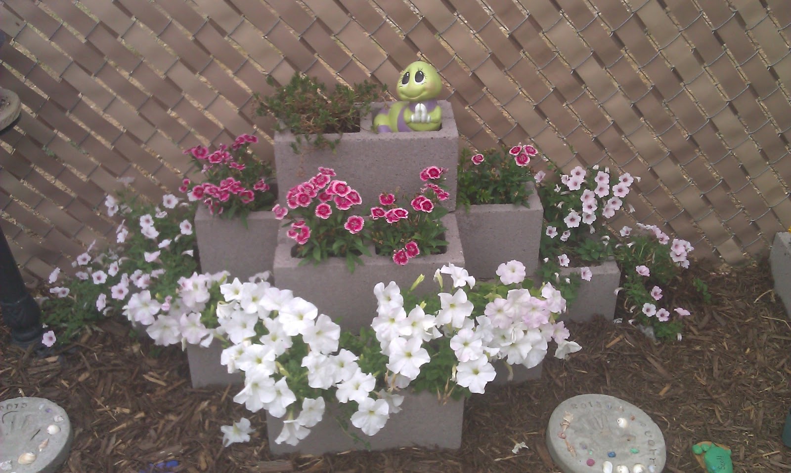 This spring/summer has been all about "upgrading" the front yard. It has been grueling and costly, but I love the end result. So it was well worth all the effort. First we moved the front of the fence 10 ft closer to the house to create more parking. Because we moved the fence we had to dig up 5 roses bushes and a crap ton of tulips, irises and daffodils. Most found new homes and some just got transplanted. We built many different planters. All out of cinder blocks. After the planters were built we put down some edging and cedar mulch. For a little added privacy we put that plastic privacy strips in the fence. I can't tell you how much dirt we had to remove from the yard to get it level. There is a mound of dirt about 8 ft long, 5 ft wide and probably 4 ft high in the backyard. Anyway we finally got the yard leveled out and new sod laid. The last project will be to pour some concrete for a small patio. And now for some pictures of the process. I will try very hard to ,make sure they are all in order.
